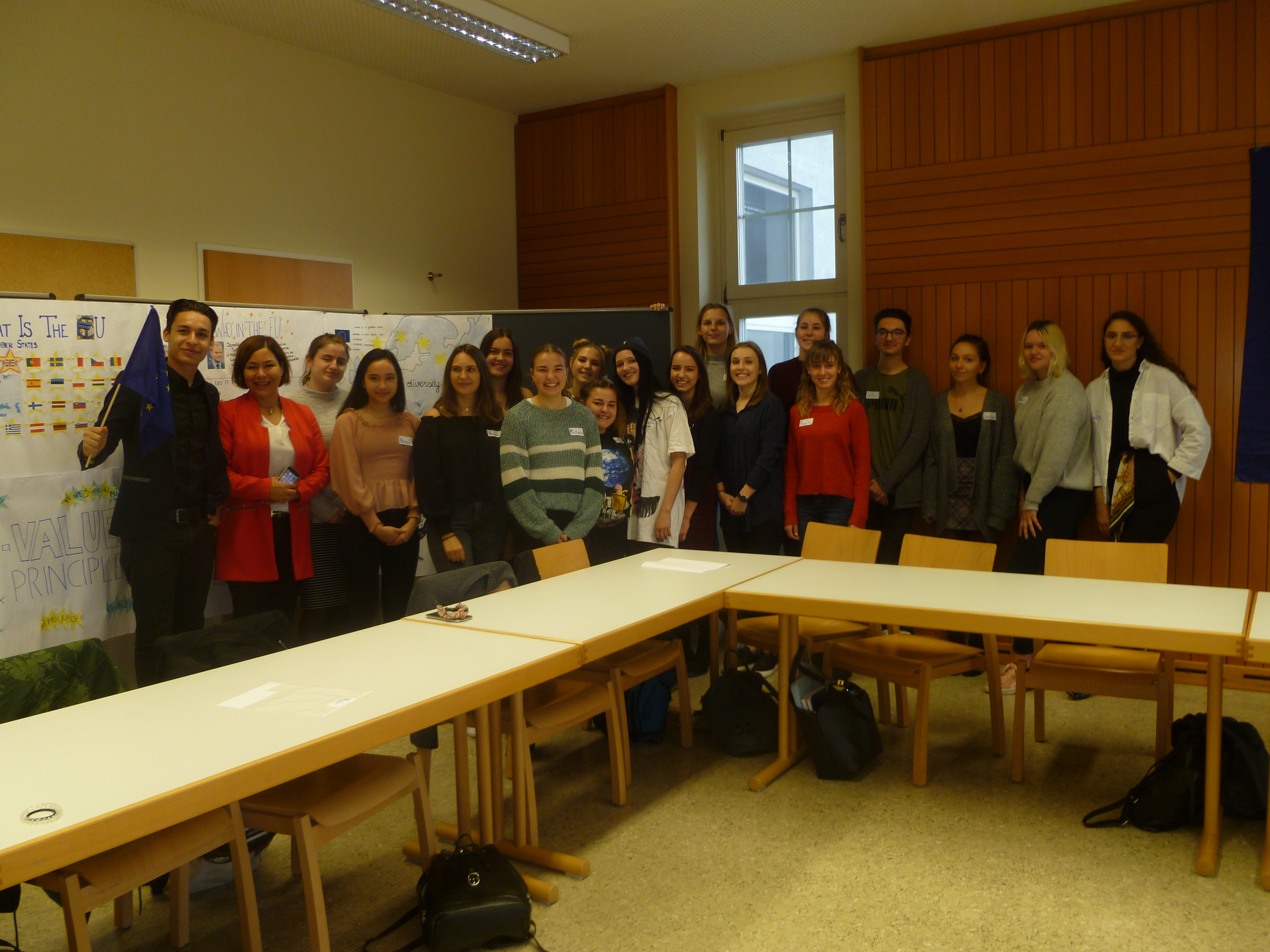 Frau Mag. Mirjam Dondi, Leiterin des Besuchs- und Informationsdienstes der Ständigen Vertretung Österreichs bei der EU, besuchte am 22.10.2018 die HTL Dornbirn im Rahmen der Aktion "Europa an deiner Schule".