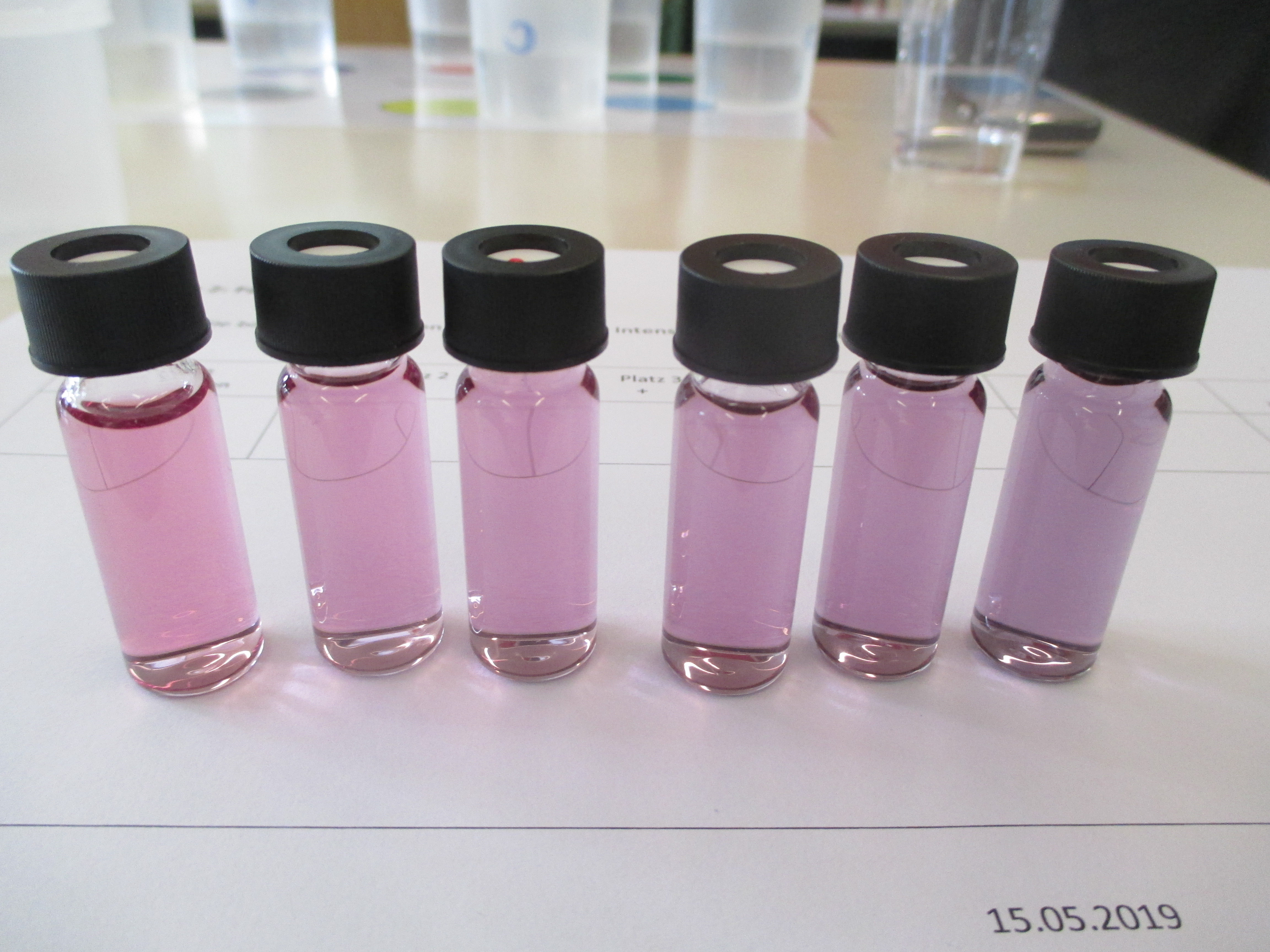 Nach der Präsentation wurden uns Kartons mit Geschmacksproben gegeben. Wir hatten fünf Aufgaben, die wir machen mussten. Die erste Aufgabe war, sechs Proben verschiedenen Geschmacksrichtungen zuzuteilen. Die zweite war, sechs Proben nach Farbintensität zu ordnen. Anschließend durften wir fünf Proben verkosten, und mussten diese einer Fruchtart zuordnen. Als nächstes wurden uns zehn Proben mit sehr schwacher Geschmacksintensität gegeben, die wir jeweils einer Geschmacksrichtung zuordnen mussten. Bei der letzten Aufgabe wurden uns zwei Apfelsaft Proben gegeben. Bei einer davon war ein Fehler eingebaut, und wir mussten herausfinden, was dieser war. Der Workshop hat viel Spaß gemacht und wir möchten uns bei Rauch Fruchtsäfte bedanken!
